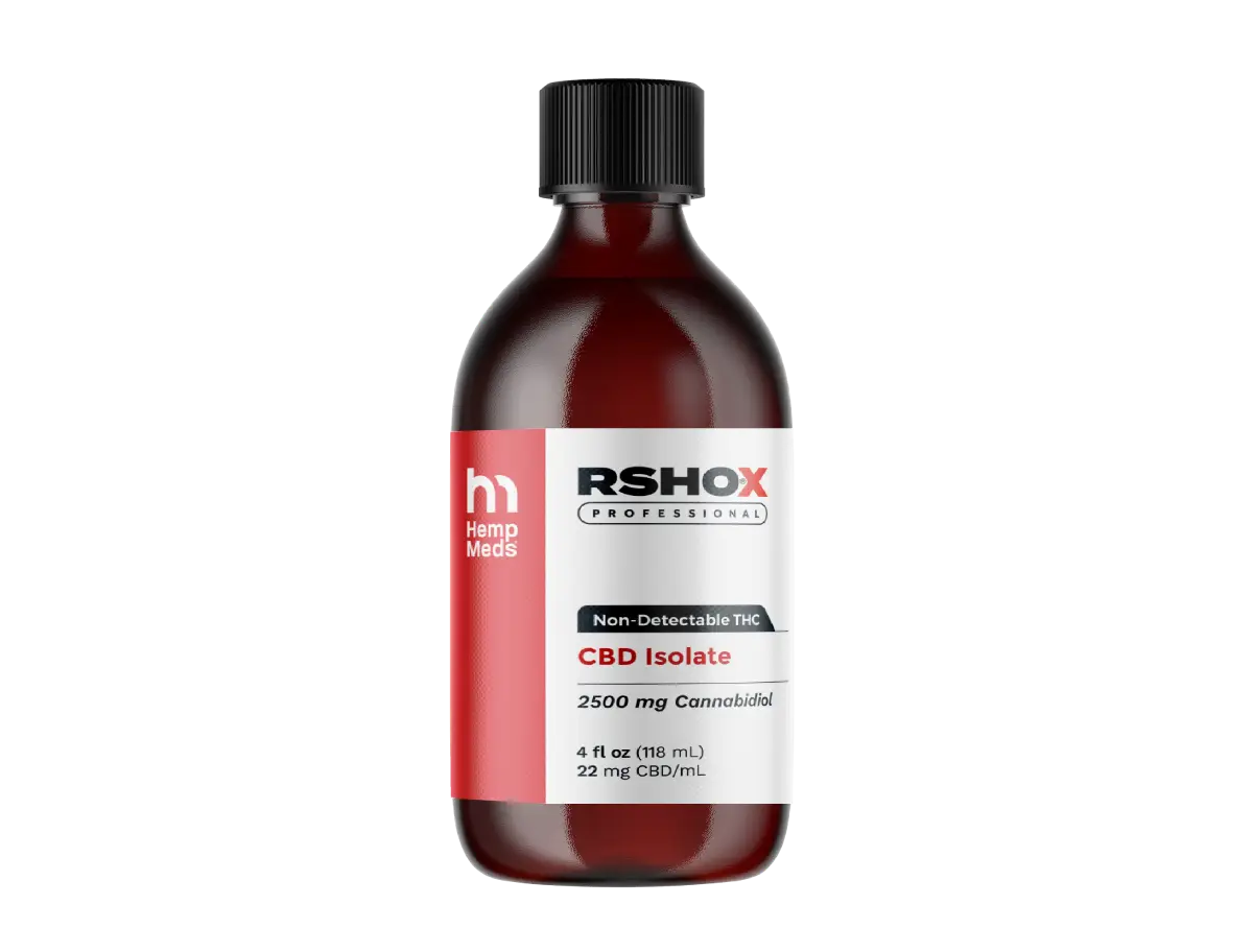 Our RSHO-X™ CBD Isolate Liquid, available in a 4 fl oz bottle containing 2500mg of CBD, offers a high-quality CBD experience with undetectable levels of THC. This makes it an ideal choice for those seeking the benefits of CBD without the concerns of detectable THC levels.